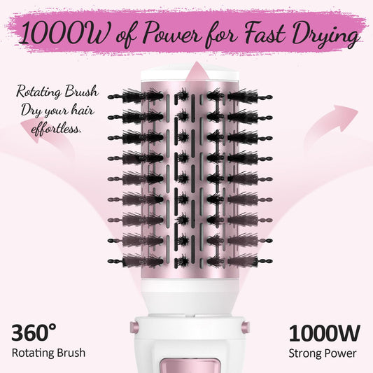 Rotating Hair Dryer Brush Spinning: 2 Size Detachable Brush(2" & 1.5") | 3 Heats & 2 Speeds Plus a Cool Air Setting | Big Buttons Design for Arthritis