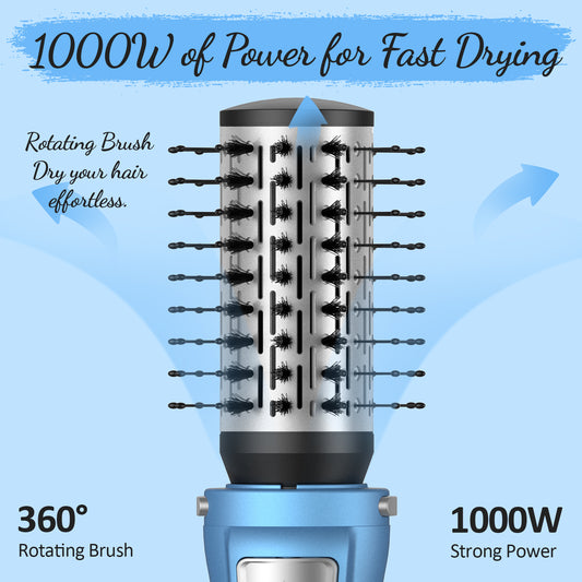 Rotating Hair Dryer Brush Spinning: 2 Size Detachable Brush(2" & 1.5") | 3 Heats & 2 Speeds Plus a Cool Air Setting | Big Buttons Design for Arthritis